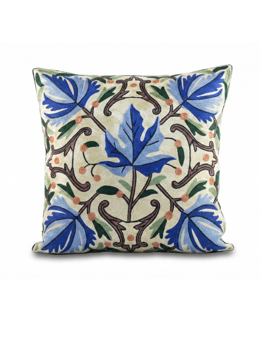 Stylish maple leaf motif Kashmiri embroidered cushion.